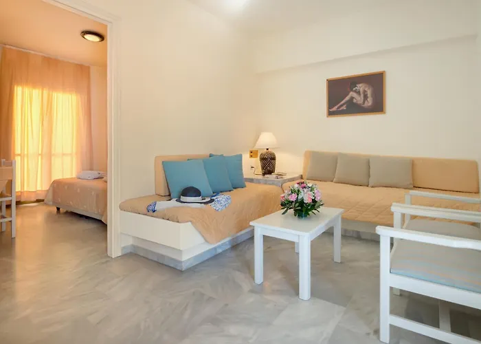 Doté d'une piscine, l'établissement Scala Hotel-Apartments Agia Pelagia de 3 étoiles est situé à 2 km des Mades Beach. L'hôtel comprend également un parking.